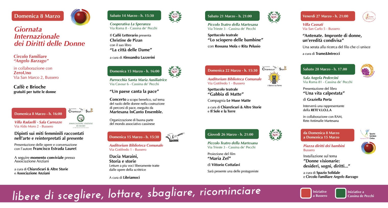 MARZO AL FEMMINILE MARZO AL FEMMINILE di Bussero in collaborazione con le altre associazioni e Cooperative ![]() ![]() ---------------------------------------------------------------------------------------- ALGERIA Prosegue il ciclo di incontri dedicato alle trasformazioni politiche del continente africano con una serata dedicata all'Algeria un Paese chiave del Mediterraneo e dell'Africa Cercheremo di comprendere meglio le dinamiche politiche contemporanee alla luce della guerra per l'Indipendenza e delle mobilitazioni del movimento Hirak del 2019